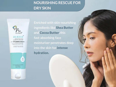 Fixderma Durave Moisture Protect Deep Hydration Face Moisturizer is a non-greasy, lightweight formula designed to provide long-lasting hydration and strengthen the skin’s natural barrier. Enriched with Ceramide Complex, Cocoa Butter, Shea Butter, and Willow Bark Extract, it helps replenish moisture, protect against environmental stressors, and maintain skin elasticity. Ideal for individuals with dry or sensitive skin, this moisturizer leaves the skin feeling soft, supple, and rejuvenated.