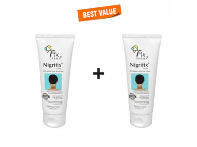 Fixderma Nigrifix Cream is a dermatologist-tested formulation specifically designed to treat skin imperfections caused by Acanthosis Nigricans. Enriched with retinol, lactic acid, and urea, it gently exfoliates thickened, darkened skin while delivering deep nourishment and hydration. Ideal for areas like the face, elbows, knees, knuckles, and back, Nigrifix targets skin discoloration and rough texture. With regular use, it helps reveal smoother, lighter, and more even-toned skin—perfect for dark and hard skin zones affected by friction or underlying skin conditions.