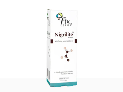 Fixderma Nigrilite Cream is a dermatologist-tested formulation specially developed to treat Acanthosis Nigricans and darkened skin folds. Enriched with Retinol, Lactic Acid, and Urea, it gently exfoliates dead skin cells, enhances cell turnover, and deeply hydrates dry, rough patches. Ideal for use on underarms, neck, elbows, and knees, this cream helps reduce pigmentation and improves skin texture over time. With regular use, Fixderma Nigrilite Cream promotes smoother, brighter, and more even-toned skin. Suitable for all skin types.