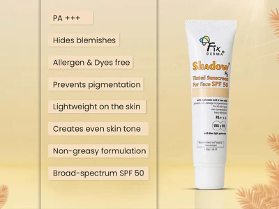 Fixderma Shadow Rx Tinted Sunscreen for Face SPF 50 PA+++ offers advanced sun protection with a touch of color. Designed to shield your skin from harmful UVA and UVB rays, this sunscreen provides high SPF 50 protection while enhancing your complexion with its natural-looking tint. Its lightweight, non-greasy formula blends seamlessly into the skin, reducing the appearance of blemishes, pigmentation and uneven skin tone. Being hypoallergenic, it is ideal for daily use by all skin types. This tinted sunscreen ensures a flawless finish while safeguarding your skin from sun damage.