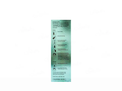 Open the bottle. Remove the seal. Insert the spray applicator firmly into the bottle. Screw it firmly and remove the safety clip. Prime the spray pump by actuating it for 3 to 5 times in air. After aiming the pump toward the centre of the bald area of the scalp, press the pump once and spread it with fingertips to cover all the bald area. Repeat for a total of 5 times, to apply a dose of 1ml of solution.