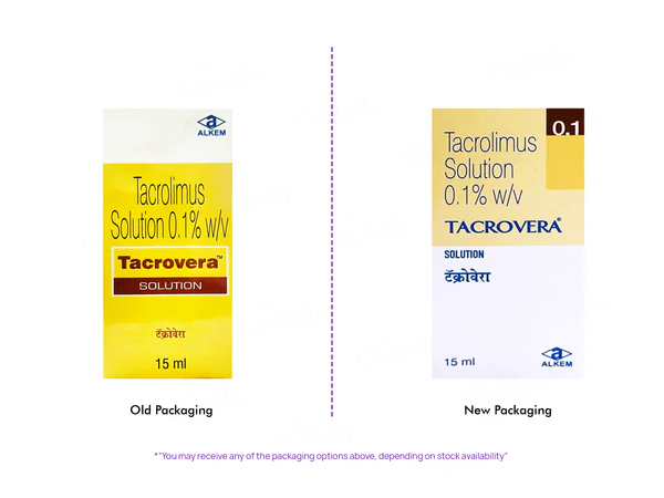 Tacrovera Solution is a potent topical medication used to treat skin conditions like psoriasis and vitiligo. Its active ingredient, tacrolimus, works by suppressing the immune response in the skin, reducing inflammation and promoting healing. This Solution is clinically proven to effectively manage symptoms and improve skin appearance. Experience relief and restore skin health with Tacrovera Solution.